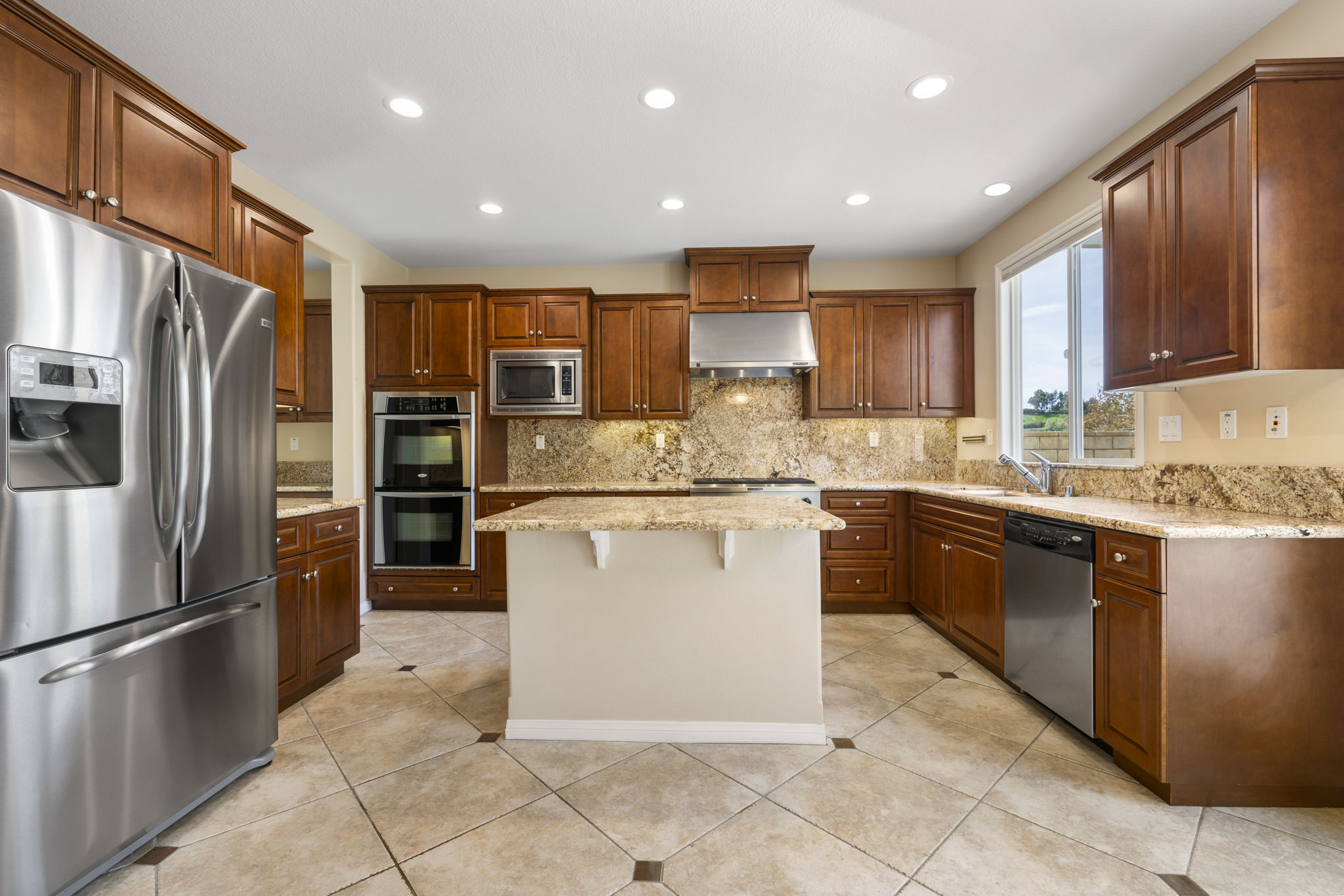 Discover this elegant, Mediterranean-inspired 5-bedroom, 3.5-bathroom home situated on a tranquil cul-de-sac. High ceilings, a spacious open floor plan, and breathtaking canyon views create an inviting atmosphere. From the entry, you'll be greeted by a formal living and dining room, perfect for entertaining, before flowing into the updated kitchen, featuring granite countertops, stainless appliances, and a walk-in pantry. The kitchen opens to the warm and welcoming family room with gas fireplace. Upstairs, all bedrooms offer privacy and comfort, including the expansive primary suite with cozy seating area, dual walk-in closets, and spa-like bathroom. Outside, the entertainer’s backyard boasts a pergola, fireplace with seating, built-in BBQ, and a peaceful water fountain. With an attached 3-car garage and a perfect blend of style and comfort, this exceptional home is not to be missed!